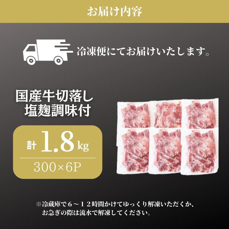 国産牛切落し 塩麹調味付1.8kg 300×6パック