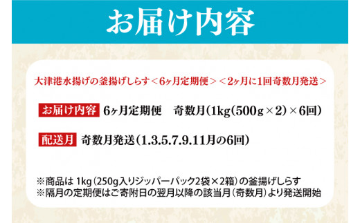 大津港水揚げの釜揚げしらす<6ヶ月定期便><2ヶ月に1回奇数月発送> 1kg×6回【海鮮 魚介類 しらす シラス ご飯のお供 たっぷり お手頃 個包装】(AS113)