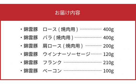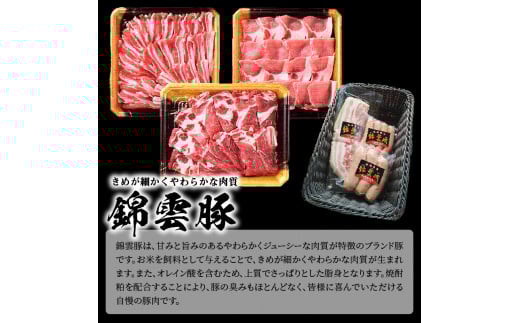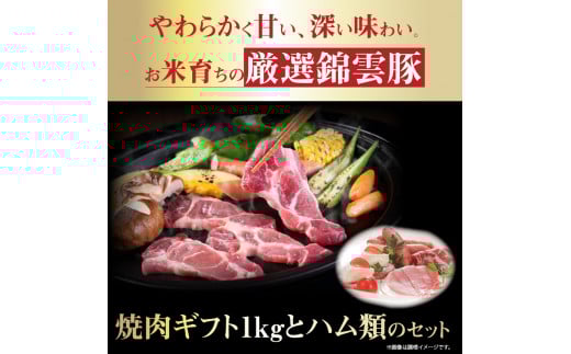 【ブランド豚肉】お米育ちの錦雲豚ギフト(焼肉用1kg)とハム類のセット FN0401