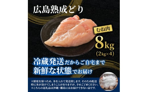 [№5895-0164]鶏肉 広島熟成どり むね肉 8kg (2kg×4) 配達不可:沖縄・離島】