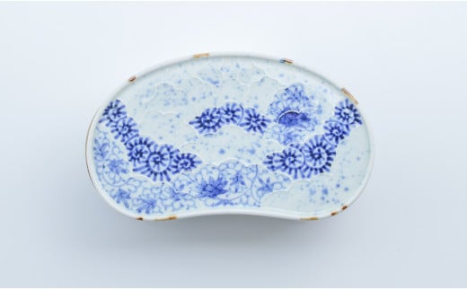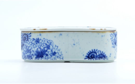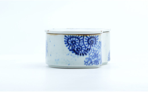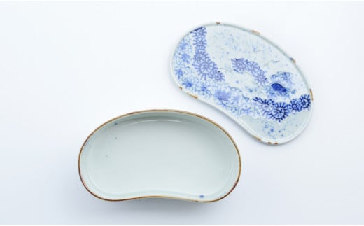 - 有田焼 唐草変り まゆ型陶箱 お正月 お祝い膳 お花見 お弁当箱 素敵 伝統的な染付 まるぶん A35-237