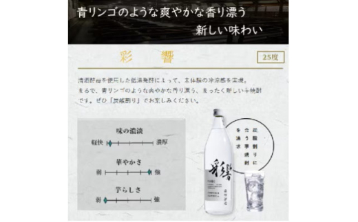 <本格焼酎>炭酸割りが好き『彩響』 900ml×4本 B2-7【1573923】