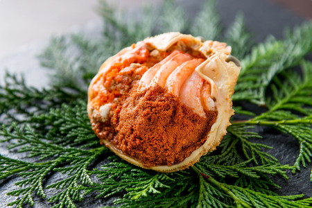 - 【蟹の匠 魚政】セイコガニの甲羅盛り 蟹の宝船(たからぶね)特大サイズ10個セット 濃縮ダシ付(2025年1月〜発送)