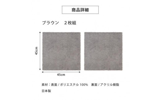 - 洗えるジョイントペットマット 45×45cm ブラウン 2枚組 ピタペトモ 犬・猫用