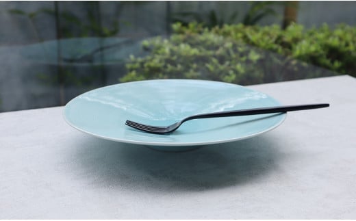 【まるふくオリジナル】有田焼 青白磁 Round Plate 2枚セット 大皿 ワンプレート パスタ皿 青 ブルー シンプル ペア A25-495