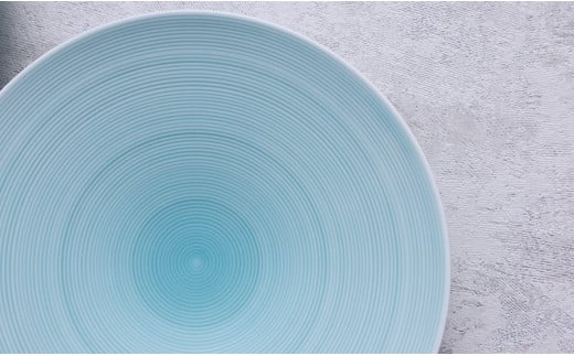 - 【まるふくオリジナル】有田焼 青白磁 Round Plate 2枚セット 大皿 ワンプレート パスタ皿 青 ブルー シンプル ペア A25-495
