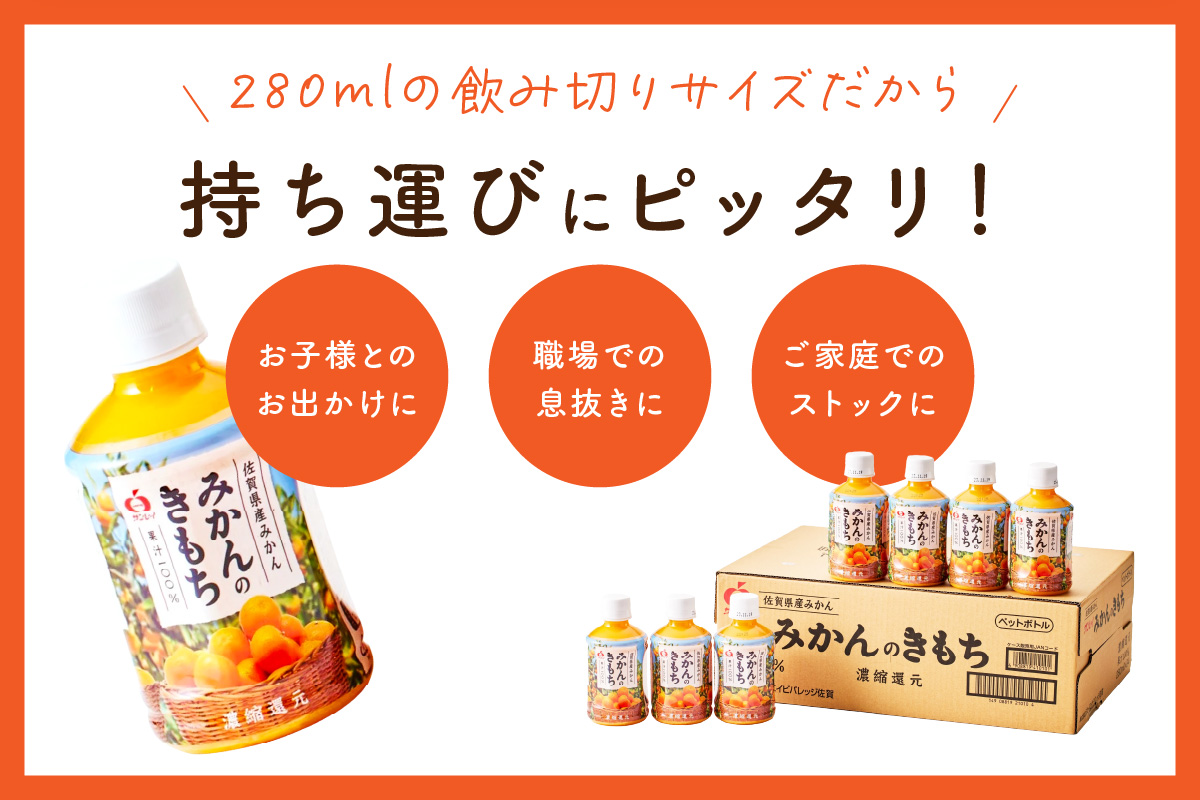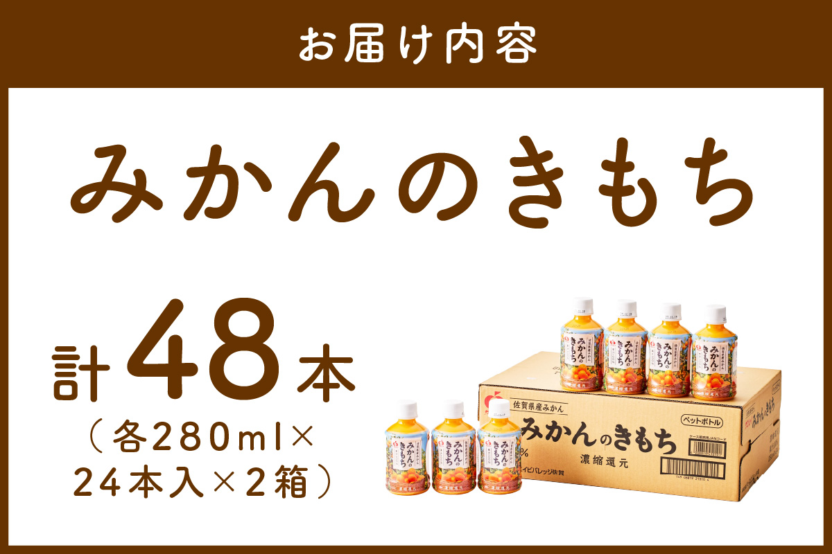 - 【佐賀県産温州みかん100%使用】 みかんジュース みかんのきもち 280ml×24本入り 2箱セット A039