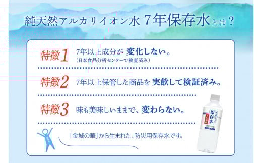 純天然アルカリイオン水 7年保存水500ml 24本入 2箱 ミネラルウォーター 軟水 水 長期保存 飲料水 防災 備蓄 備蓄水 非常用 保存用 防災用 国産 天然水 アルカリイオン【043_1830】