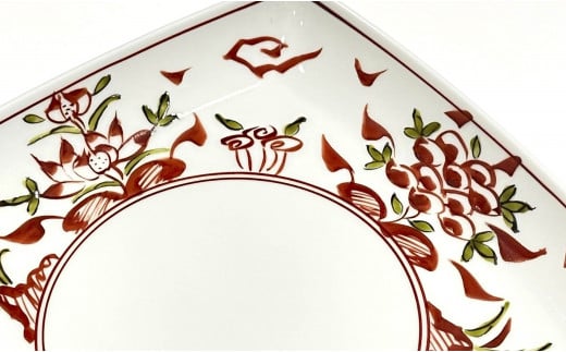 - 有田焼 赤絵万暦 角皿 M 24to3 西富陶磁器 和食器 食器 取皿 四角い お皿 お祝い ハレの日 A18-78