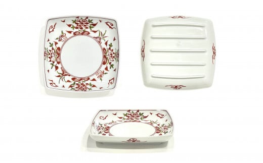 有田焼 赤絵万暦 角皿 M 24to3 西富陶磁器 和食器 食器 取皿 四角い お皿 お祝い ハレの日 A18-78