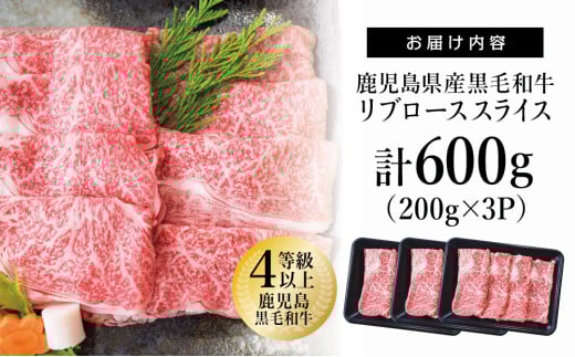 ★訳あり・数量限定★ 鹿児島県産 4等級以上黒毛和牛リブローススライス すき焼き・しゃぶしゃぶ用 計600g (200g×3P) 数量限定 牛肉 国産 和牛 霜降り ロース しゃぶしゃぶ すき焼き 冷凍 カミチク 南さつま市