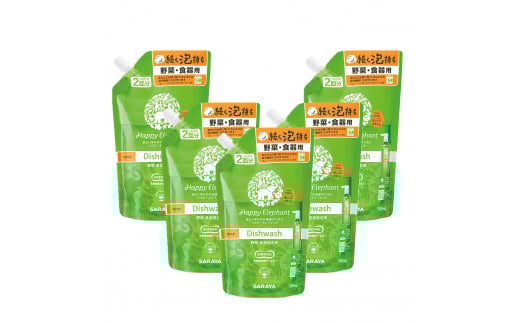 - ハッピーエレファント野菜・食器用洗剤 オレンジ&ライム 500mL 詰替え5個セット