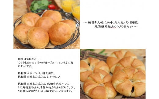 低糖質大豆パン10個と低糖質大豆あんぱん5個セット【ベーカリーショップレザンジュ】 A-44