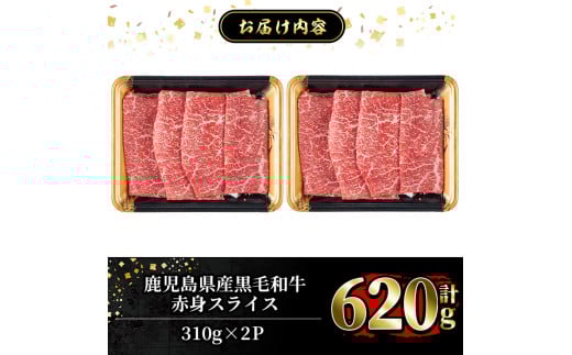 a1027 《10営業日以内に発送》鹿児島県産黒毛和牛赤身スライス620g(310g×2P)【水迫畜産】 国産 肉 牛肉 牛 黒毛和牛 赤身 焼肉 しゃぶしゃぶ すきやき すき焼き