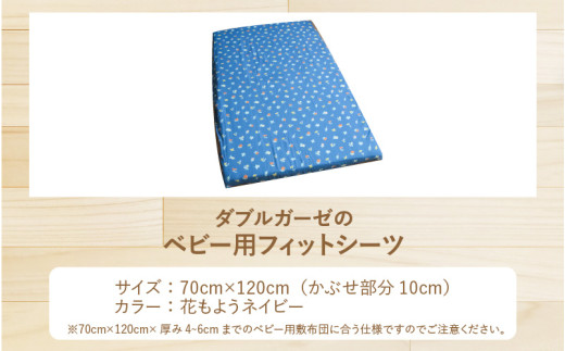 - ベビー用フィットシーツ ベビーサイズ 70×120cm 花もようネイビー