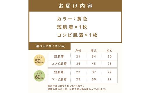 - ミキハウスピュアベールフライス肌着2点セット(黄)(50cm)【070-0008-01】