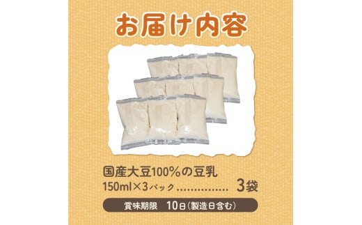 国産大豆100%の豆乳3袋セット(150ml×3P)