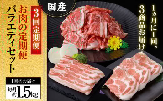 - 【3回定期便】お肉の定期便 バラエティセット (3ヵ月) 総計約4.5kg 国産 牛肉 切り落とし 豚肉 バラ スライス 【(有)山重食肉】[ATAP065]