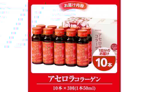 isa370 3回定期便 定期購入 コラーゲンドリンク アセロラコラーゲン 50ml 合計30本(10本×3回) グルコサミン シトルリン コエンザイムQ10 ヒアルロン酸 ビタミンC 配合! 国産 アセロラを使用 美容のための コラーゲン飲料です アセロラ ドリンク【財宝】