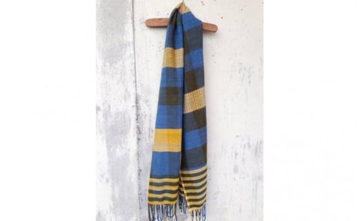 - ito to iro 手染め・手織り仕上「ストール」 ネイビー×カーキベース変化織りポイント