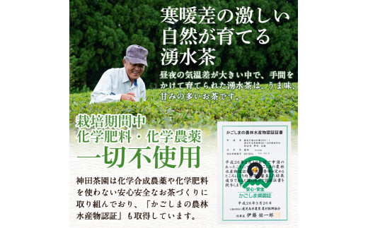 - y313 《数量限定》鹿児島県湧水町産!栽培期間中農薬・化学肥料不使用!湧水上煎茶 計500g(100g×5本) 国産 九州産 鹿児島県産 茶葉 お茶 茶 日本茶 緑茶 上煎茶 一番茶 湧水茶 浅蒸し茶 ギフト 贈答 プレゼント 贈り物 令和7年産 新茶【神田茶園】