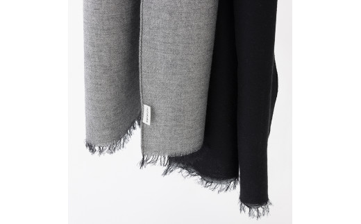 播州織バイカラーコットンカシミヤストール【ハーフサイズ】(57-5) ブラック×グレー