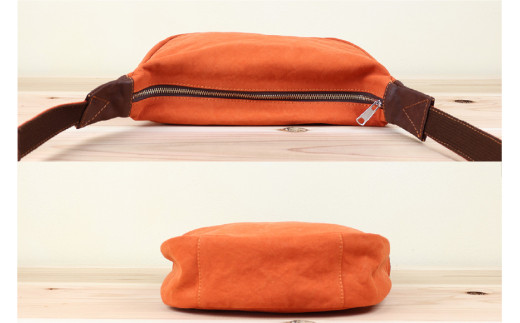 - 【オレンジ】半月型のショルダーバッグ [アトリエSASSA 富山県 朝日町 34310325-or] ファスナー 鞄 かばん カバン 帆布 革 おしゃれ 手作り シンプル レザー