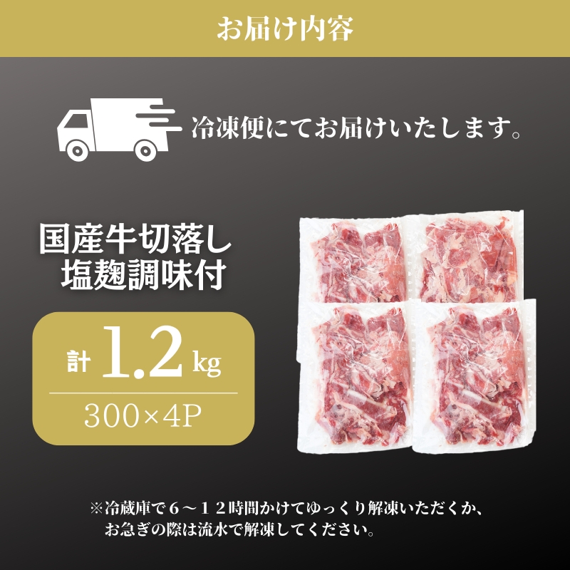 国産牛切落し 塩麹調味付1.2kg 300×4パック