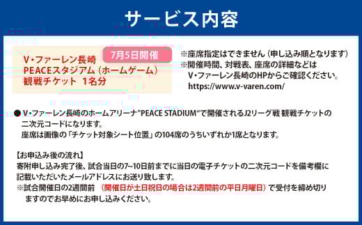 - 【7月5日開催】V・ファーレン長崎 PEACEスタジアム (ホームゲーム) 観戦チケット 1名分 V-VAREN J2リーグ サッカー チケット