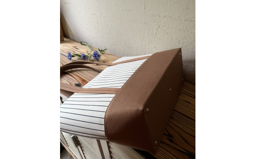 【AKIRAオリジナル】【マツコの知らない世界 で紹介されました!】 中型レディストートバッグ ショルダータイプ ストライプ×薄茶デニム【2025年7月以降順次発送】 軽量 軽い 日本製 キャンバス 帆布 横型 肩掛け 通勤 通学 大容量 上質 カジュアル オシャレ レディース カバン 鞄 バック