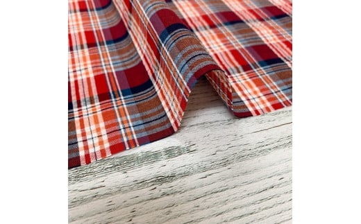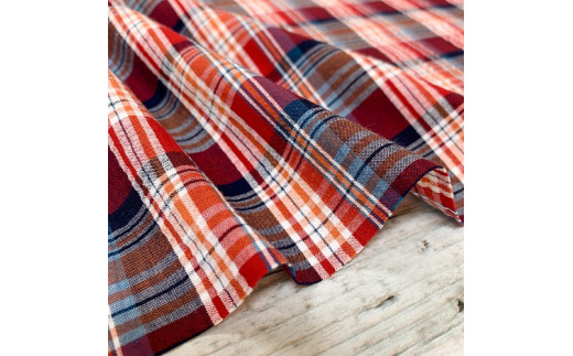 - 06-24 播州織生地「コットンサッカーチェック(50010)」(1.5m) レッドオレンジ