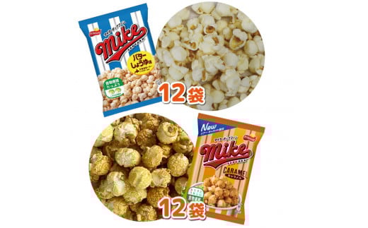 スナック 菓子 【マイクポップコーン】 2種類 食べ比べ◇ バラエティ(12袋×2種) 計24袋 バターしょうゆ味 キャラメル 詰め合わせ_DI32