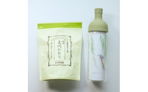 - ほうじ茶 ティーバッグ & フィルターインボトル (かわせみの絵付け入) 茎ほうじ茶 ほうじ茶 茶葉 ティーバッグ テトラパック フィルターインボトル 小川武治茶舗 海峰窯 コラボ商品 特撰 玉川かおり セット お茶 日本茶 国産 最高級 京都府 井手町【093】