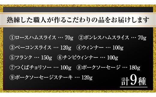- 【お中元熨斗付き】 筑波ハム バラエティ 9品 ( ハム ベーコン ソーセージ ) 『常陸の輝き』 茨城県産 ブランド豚 銘柄豚 ( 茨城県共通返礼品 ) ロースハム ボンレスハム フランク ウィンナー チョリソー 豚 ポーク ステーキ 肉 お肉 [EN011sa]
