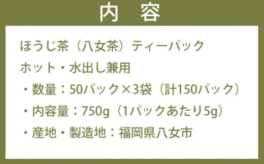 八女茶のほうじ茶ティーバッグ たっぷり5g×150パック ~簡単で美味しいお徳用~(八女の鶴製茶園)