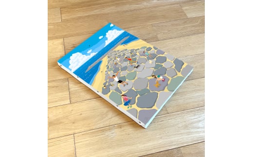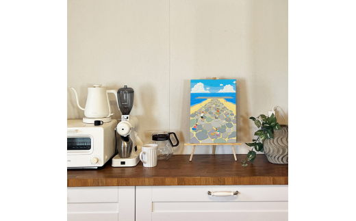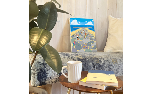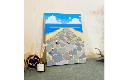湘南・茅ヶ崎で描く、海を感じるイラストアート 『 湘南ランドスケープ03:茅ヶ崎 ヘッドランド 』 キャンバスアートパネル(中) /絵画 風景 犬 猫