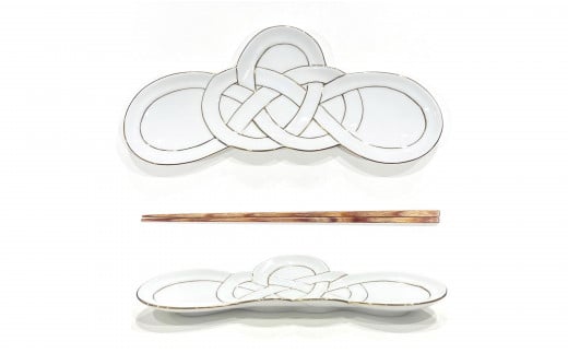 有田焼 金線 松結び 長皿 前菜皿 2枚セット 24to3 西富陶磁器 A25-475