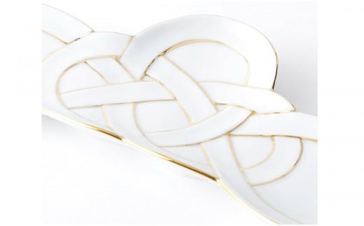 - 有田焼 金線 松結び 長皿 前菜皿 2枚セット 24to3 西富陶磁器 A25-475