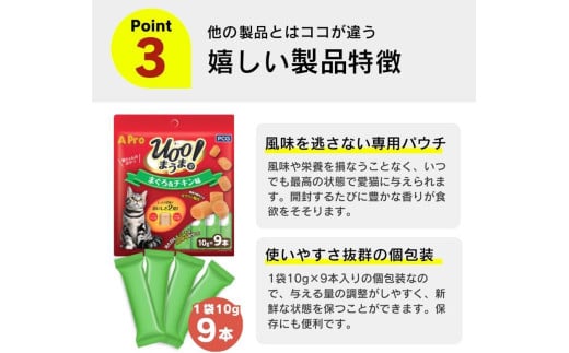 - A Pro 猫用おやつ Uoo!まうま(かつお&チキン味)9本×36袋_A Pro 猫用 おやつ Uoo!まうま 9本 × 36袋 計 324本 かつおとチキン キュート コロコロ形状 しっとり 2層 健康維持 サポート お手軽 多頭飼い キャットフード 福岡県 久留米市_Pf043-04
