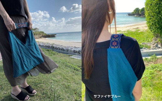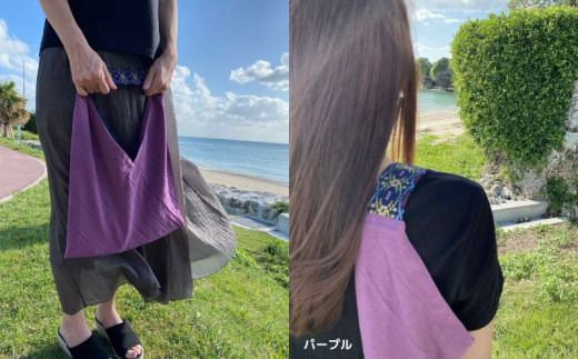 - 【nunu】<ワンポイント読谷山花織>美ら色バック・選べるカラー ☆ 沖縄県 読谷村 涼しげ おしゃれ カラフル 染物 リラックス 綿麻 エコバック 伝統工芸品