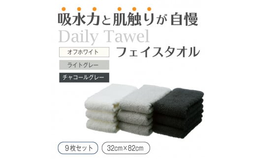 - 吸水力と肌触りが自慢のデイリーユースフェイスタオル オフホワイト・ライトグレー・チャコールグレー 9枚 [4785]
