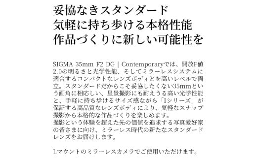 - SIGMA 35mm F2 DG | Contemporary 【Lマウント/ブラック】