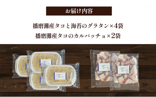 [№5359-0011]播磨灘産タコと海苔のグラタン4袋×播磨灘産タコのカルパッチョ2袋
