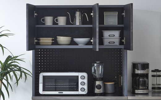 フィオーレ90 キッチンボード LBR・DGY 強化紙 ステンレス 食器棚 キッチン収納 パン作り ピザ作り 料理 インダストリアル 家具 インテリア 福岡県 柳川市 送料無料