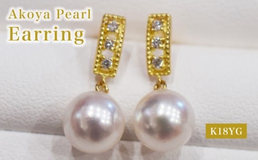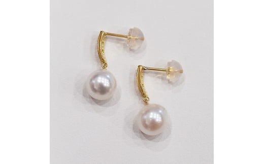 S085-493_あこや真珠 天草 ピアス ダイヤモンド 揺れる 0.03ct K18 K14 7.5mm - 8mm ホワイトピンク 真珠 K18YG