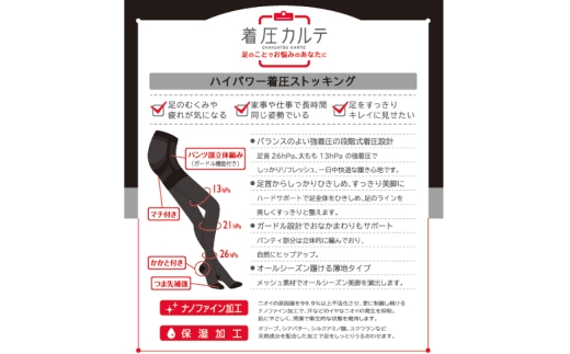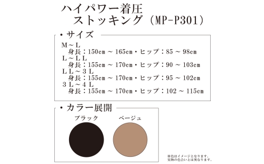 - 【メディックピエドシリーズ】ハイパワー着圧ストッキング MP-P301 3L-4L ブラック