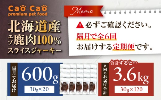 - 【全6回定期便】Cao Cao エゾ鹿肉100% スライスジャーキー 600g(30g×20袋) T035-T11-01