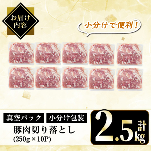 A5-033-B 国産!鹿児島県産豚肉切り落とし真空小分け 250g×10P(計2.5kg)【肉の豊楽】霧島市 豚肉 ぶたにく 豚 小分け 切り落とし 真空パック 切落し 冷凍