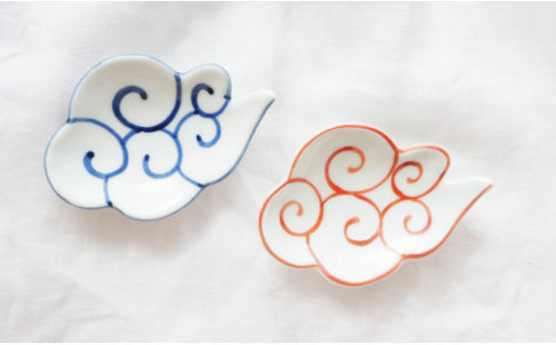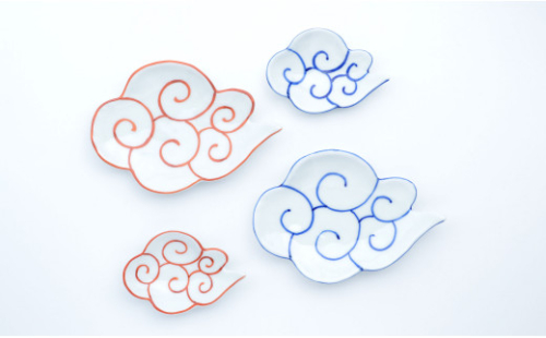 - 有田焼 雲形の小皿 4枚セット【まるぶん】食器 器 うつわ 磁器 陶磁器 和食器 皿 プレート小皿 豆皿 取皿 4枚 セット 雲 ブルー レッド 食洗機対応 35000円 A35-338