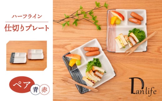 - 【波佐見焼】ハーフライン 仕切りプレート ペア【団陶器】 [PB167]